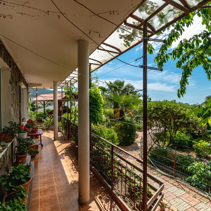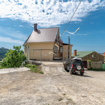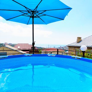 На территории мангал, беседка, каркасный бассейн, шезлонги, парковка, ухоженный сад красивый вид на море и горы